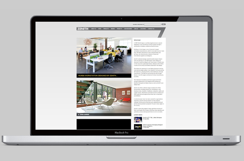 Identity design, collateral design, website design for furniture design company Zenith Interiors. Website